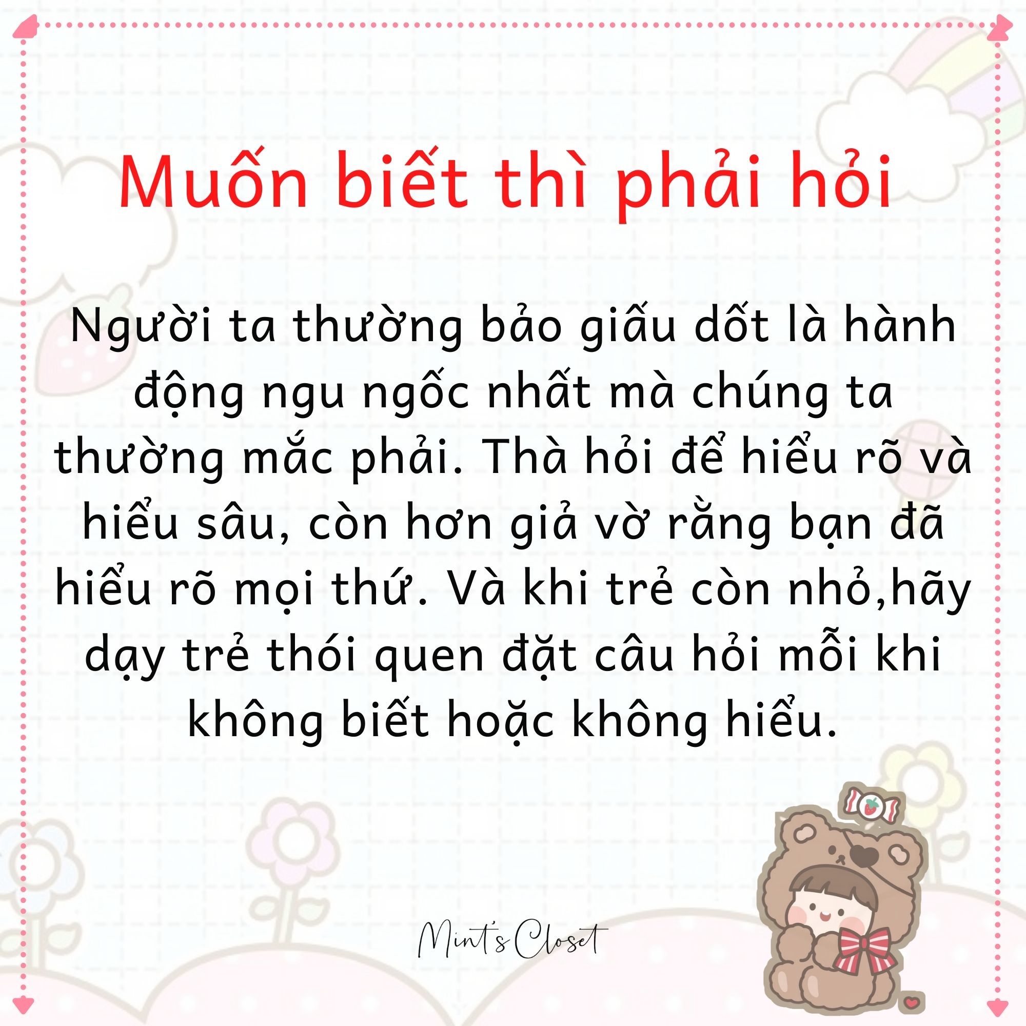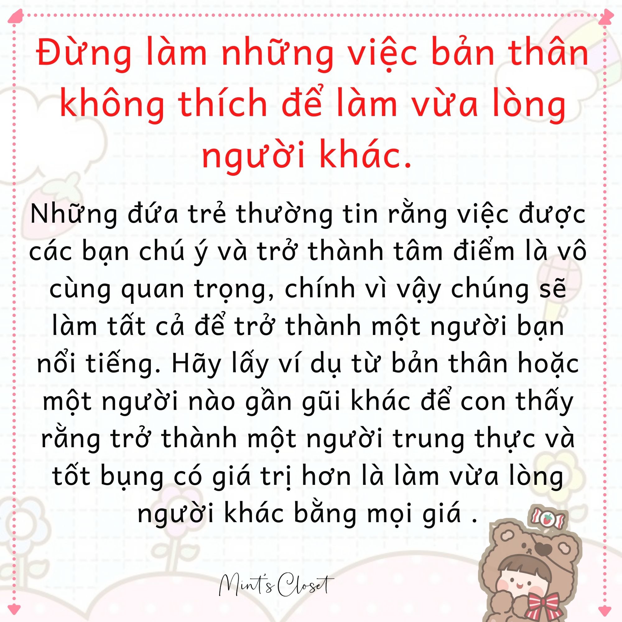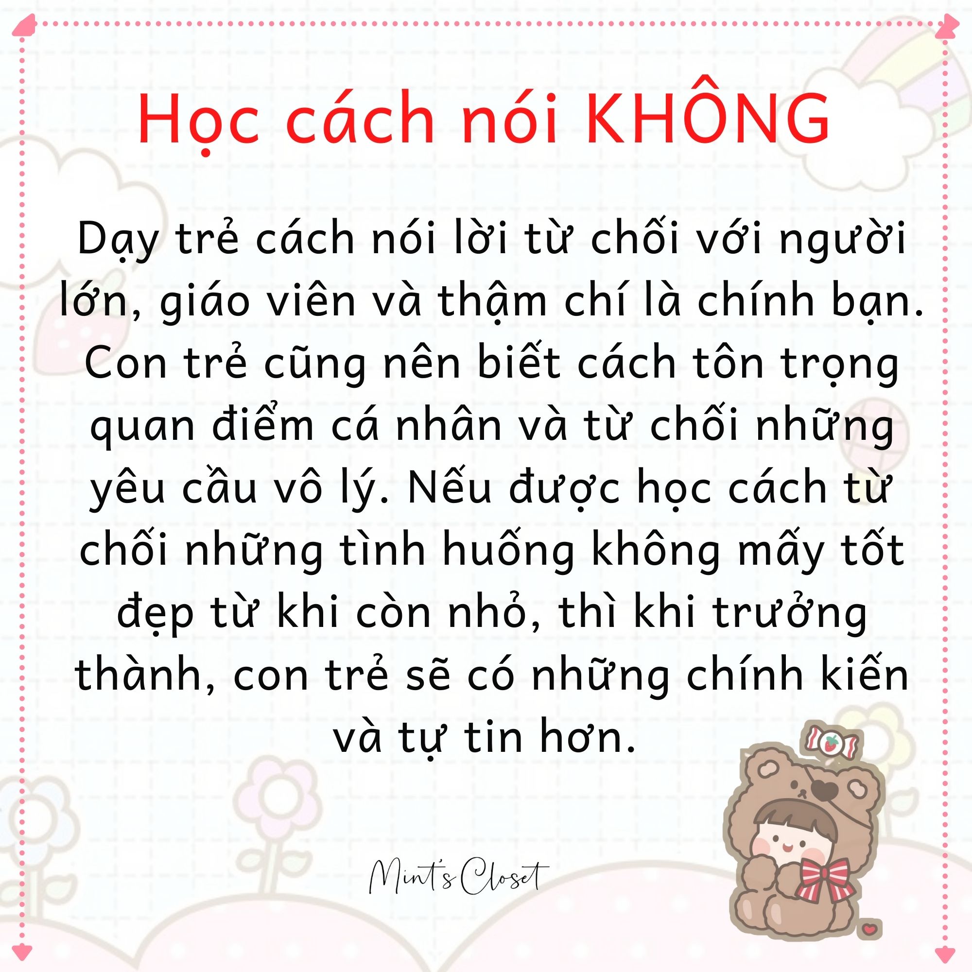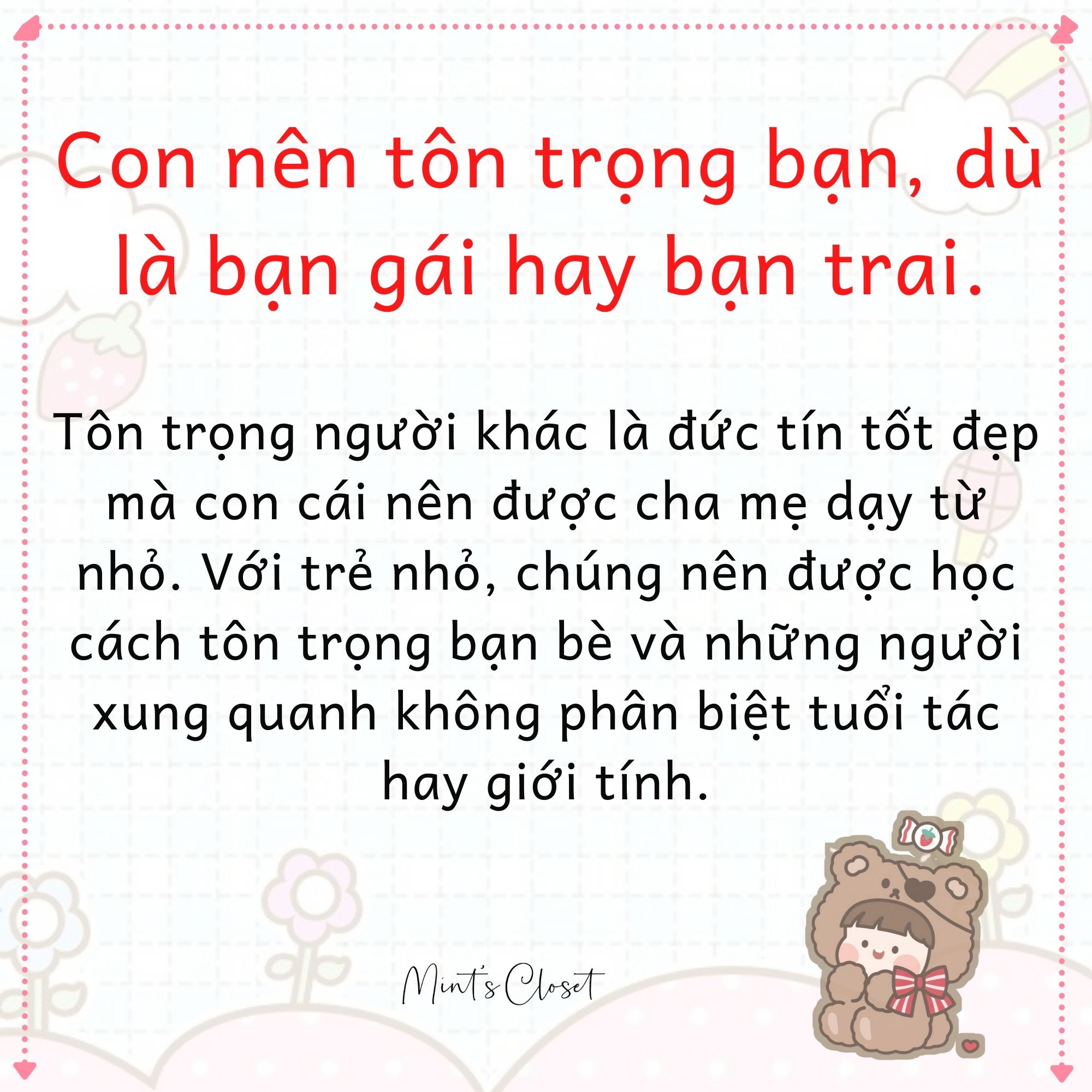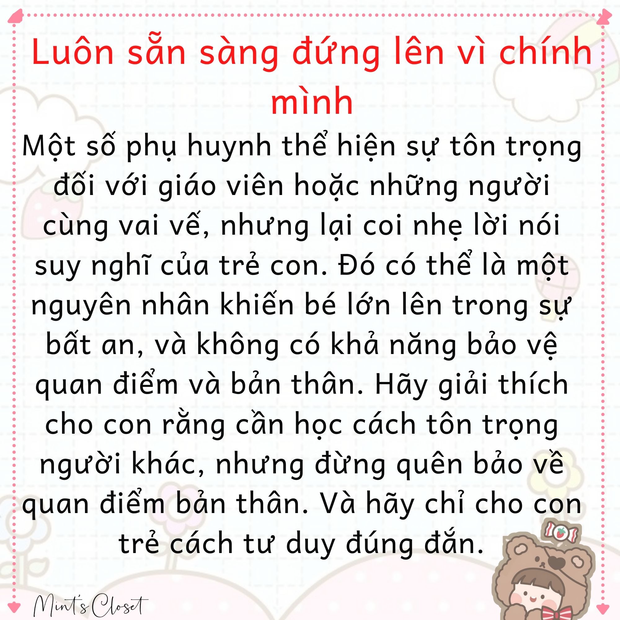 Người ta thường nói “dạy con từ thuở còn thơ”, vì vậy trước khi bé trở nên quá cứng cáp và trở nên bảo thủ hơn, hãy hướng dẫn cho con cách sống và nhận thức đúng đắn.