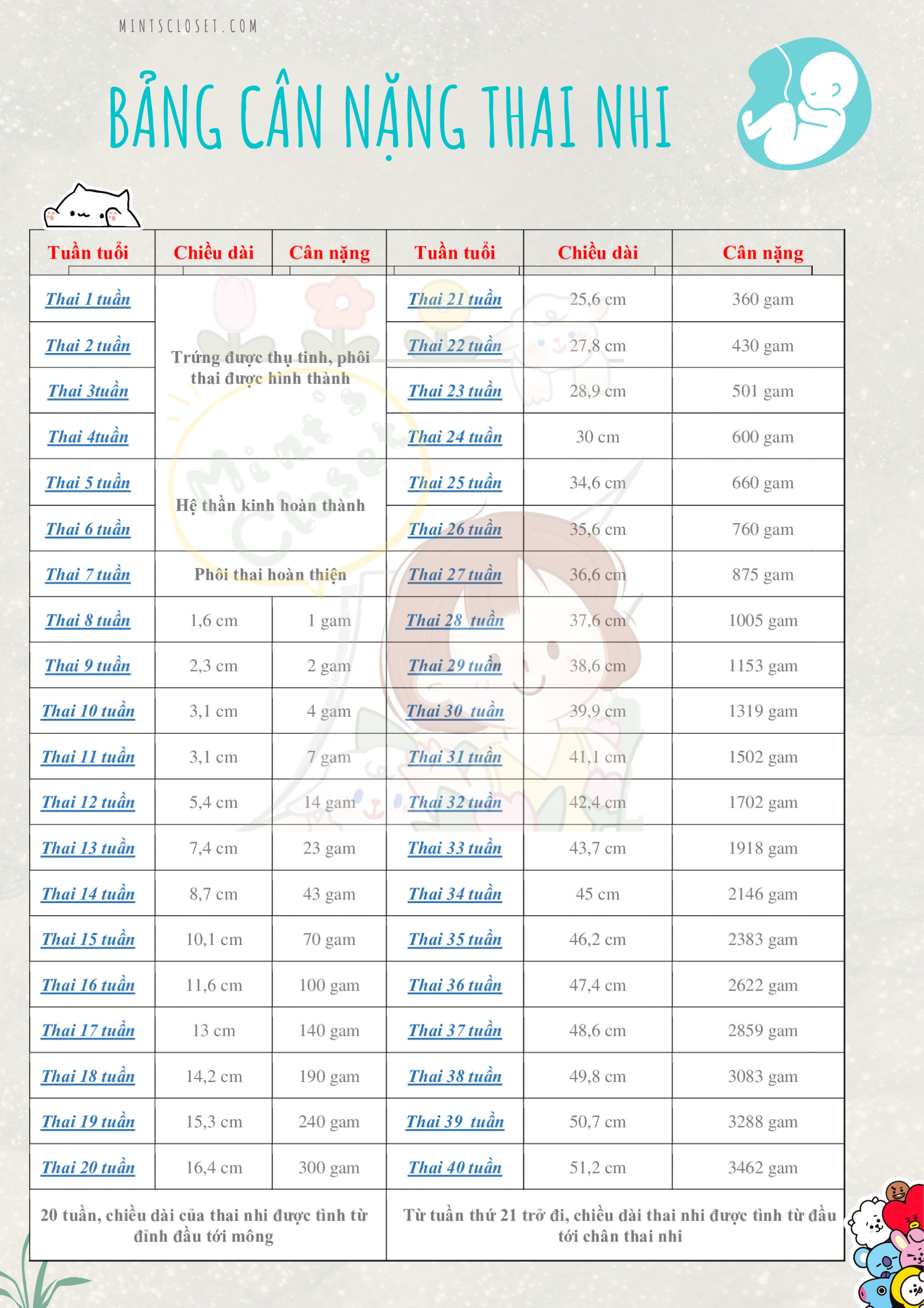 Bảng Cân Nặng Thai Nhi Chuẩn Theo Từng Tuần Tuổi