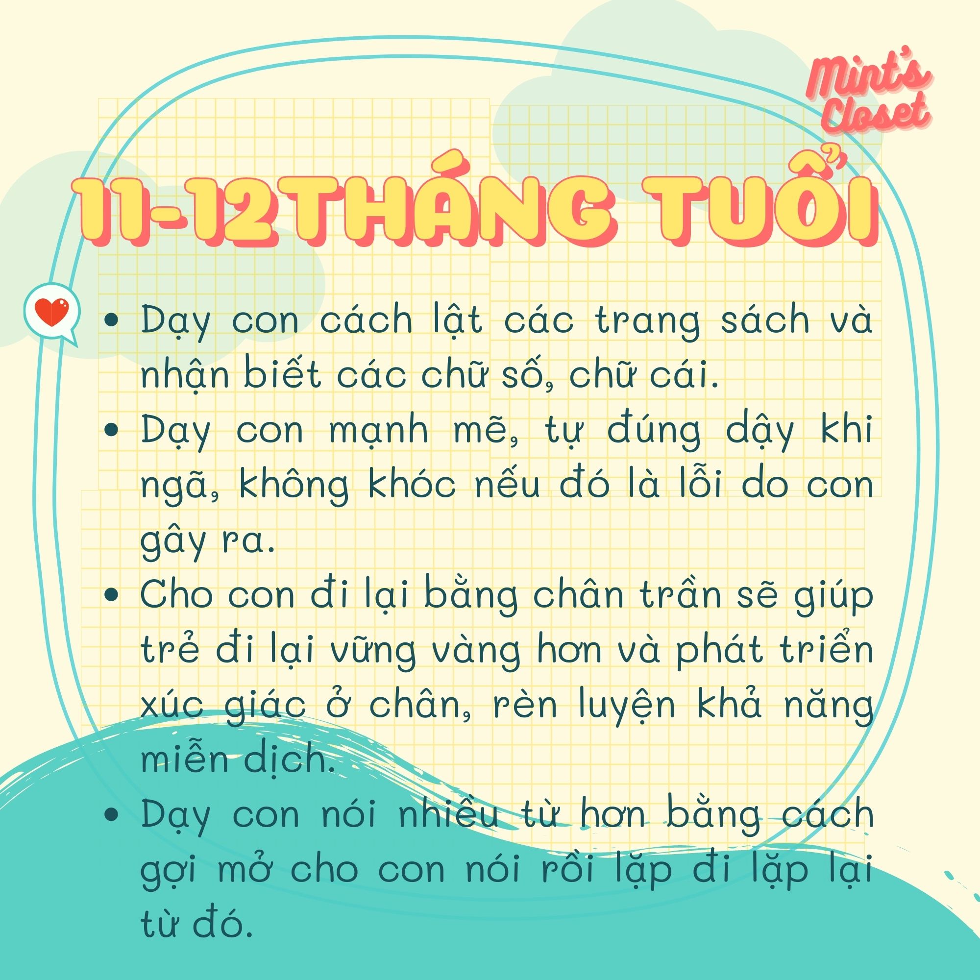 30.07.2021Lần đầu làm mẹ, ắt hẳn không ít bạn sẽ bối rối trong việc chăm sóc bé đặc biệt là trong 12 tháng đầu đời. Bạn có thể hơi hoang mang khi có quá nhiều thứ phải học hỏi, quá nhiều việc phải thích nghi sau khi bé yêu ra đời. Dưới đây là chia sẻ cẩm nang chăm sóc bé trong 12 tháng đầu đời của Mintscloset mẹ tham khảo ngay nhé!