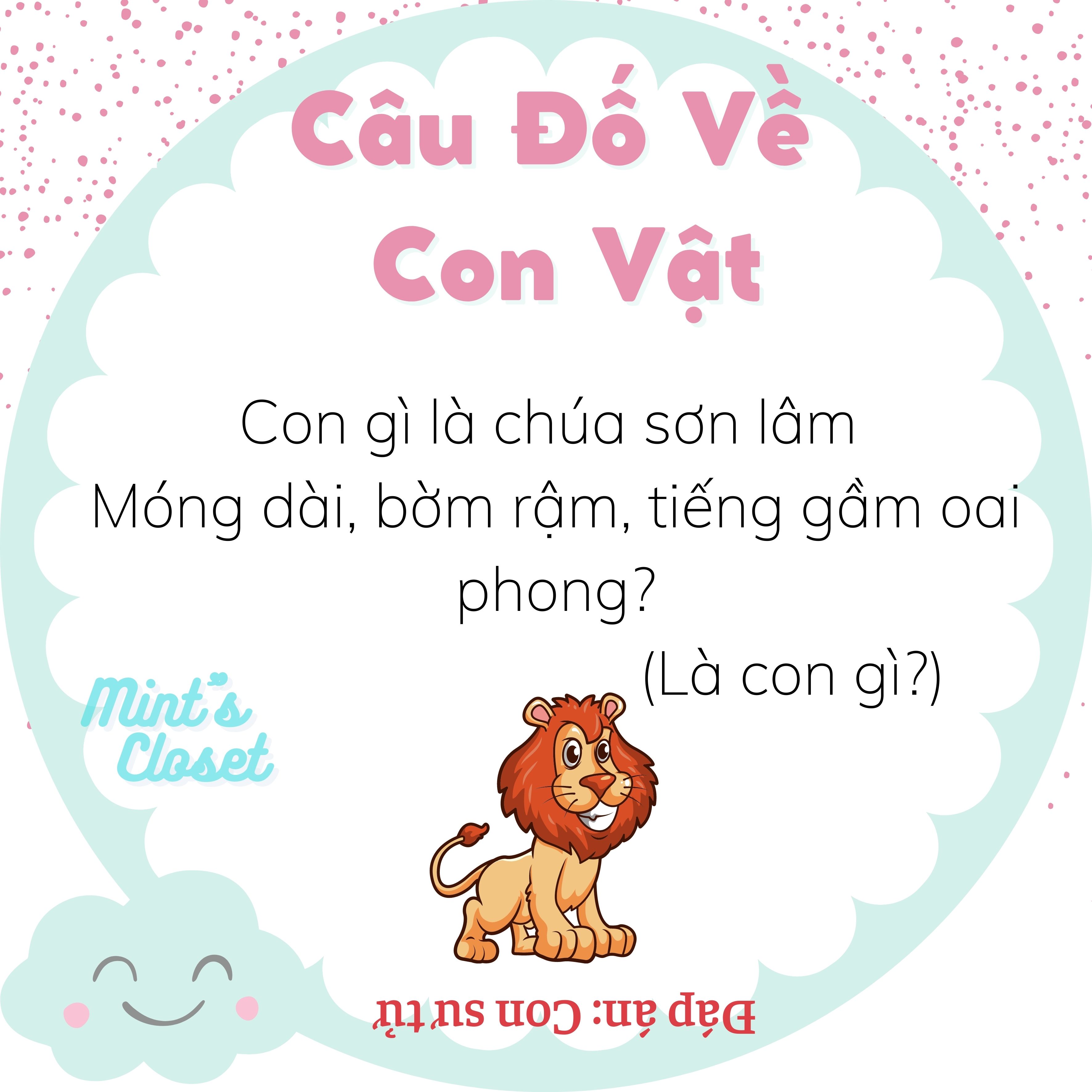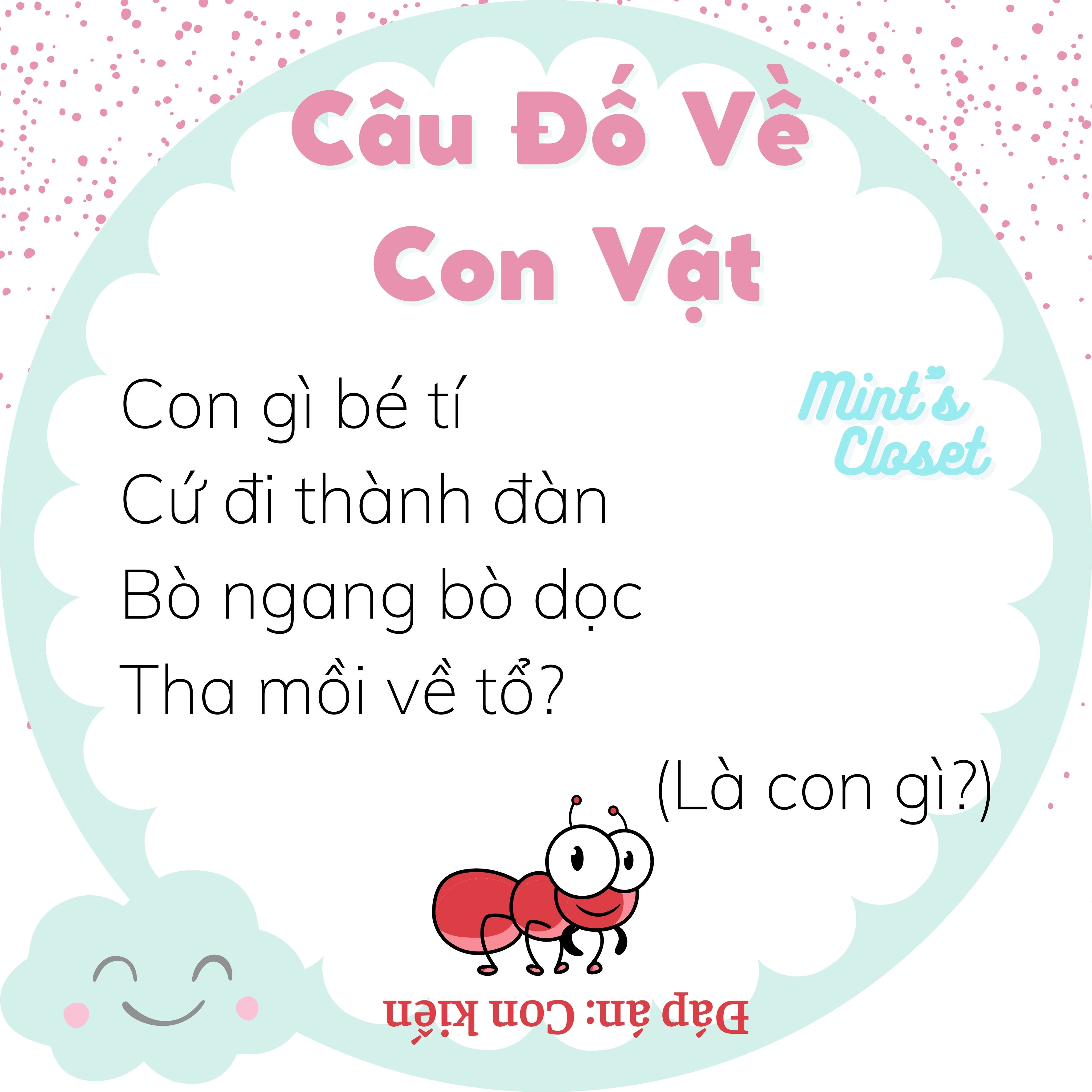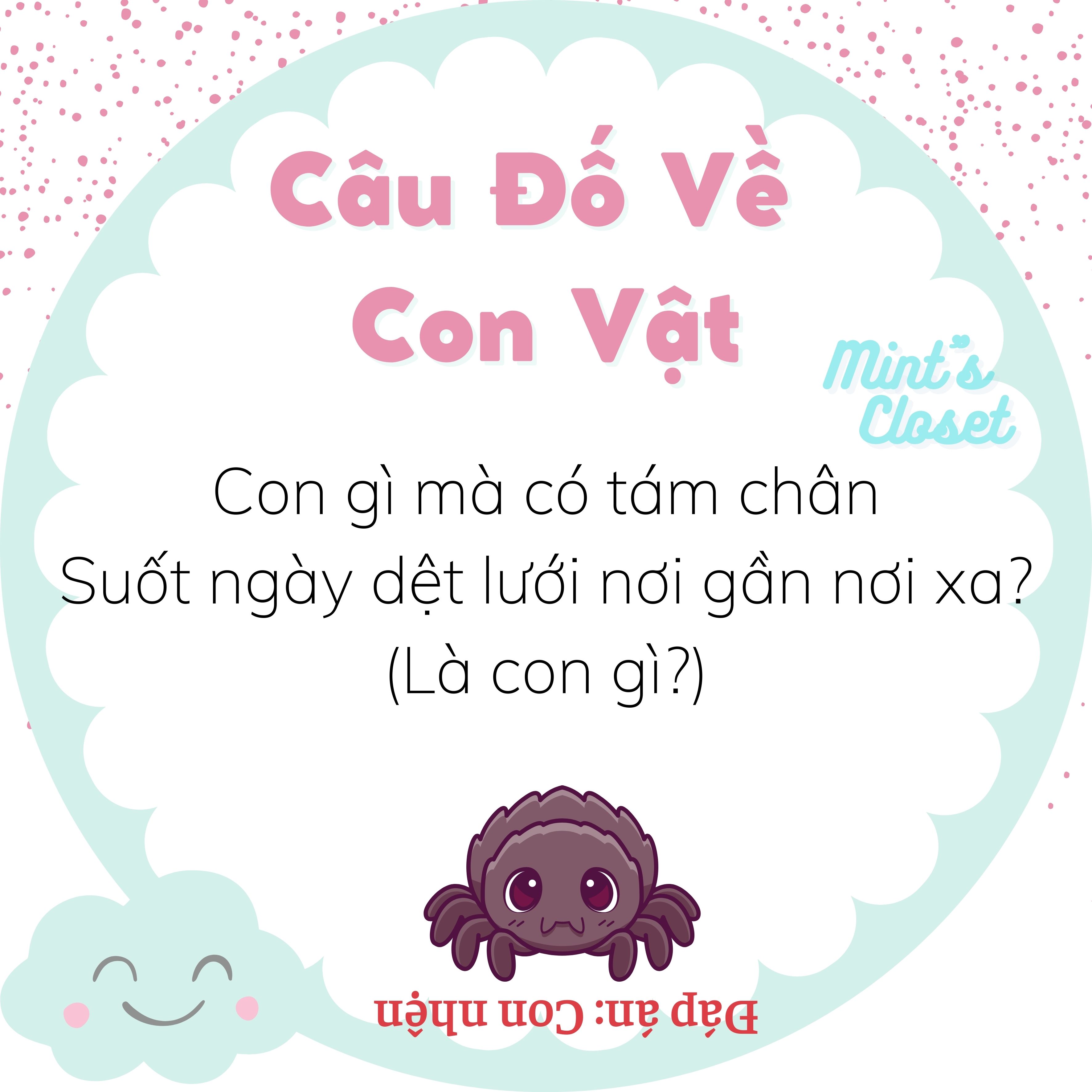 12.10.2021Những câu đố về con vật quen thuộc như cá, mèo, gà, vịt, thỏ, chó... dưới đây không chỉ bố mẹ có thêm trò giải trí để chơi với con mà còn có thể giúp trẻ phát triển tư duy ngôn ngữ, tăng khả năng ghi nhớ và tập trung ở trẻ.
