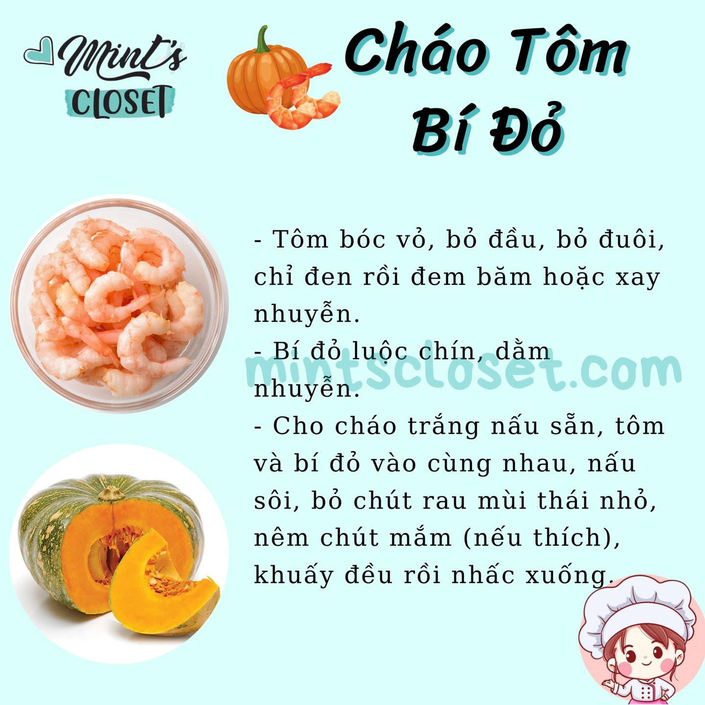 Cách nấu cháo tôm bí đỏ cho bé ăn dặm: