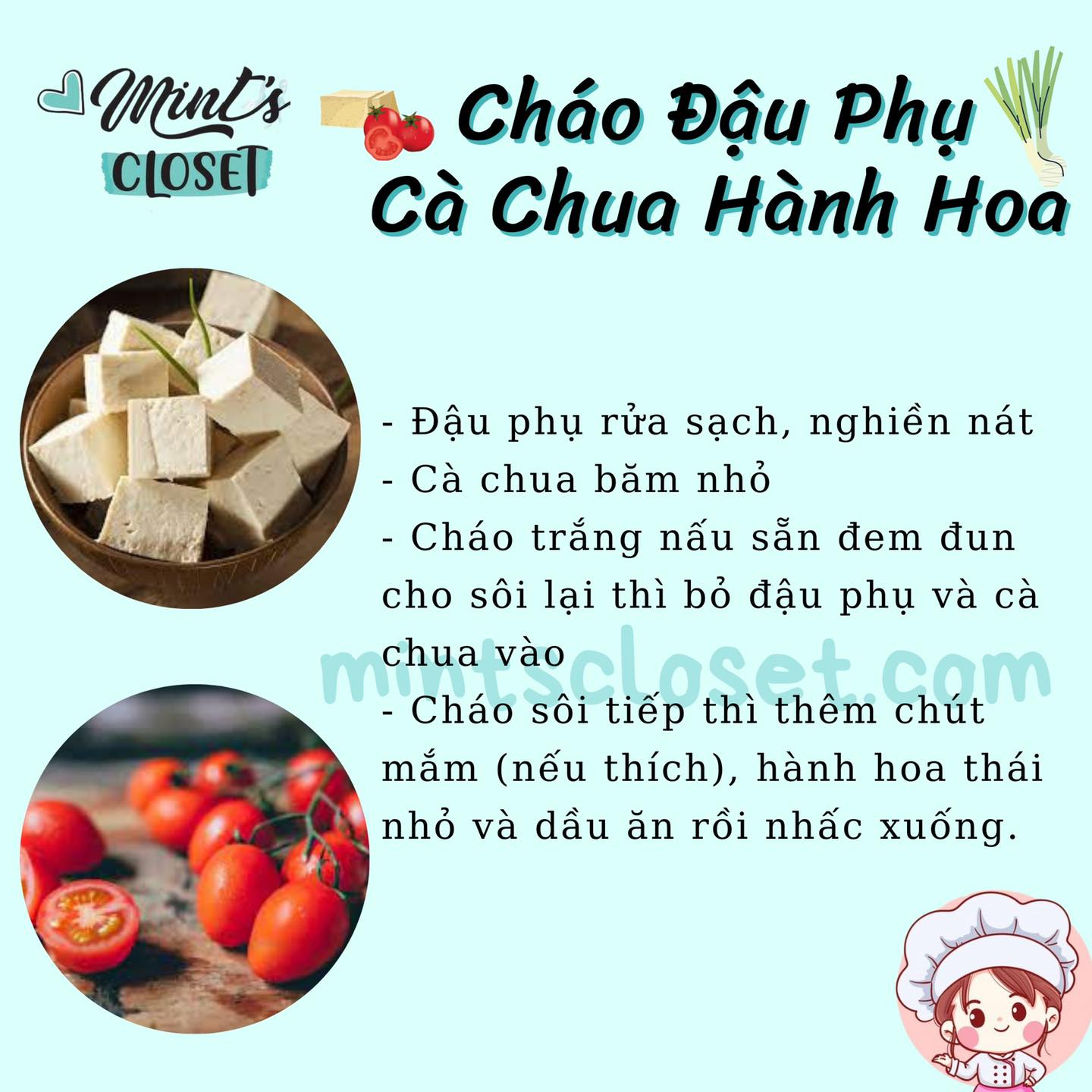3. Cháo Đậu Phụ Cà Chua Hành Hoa