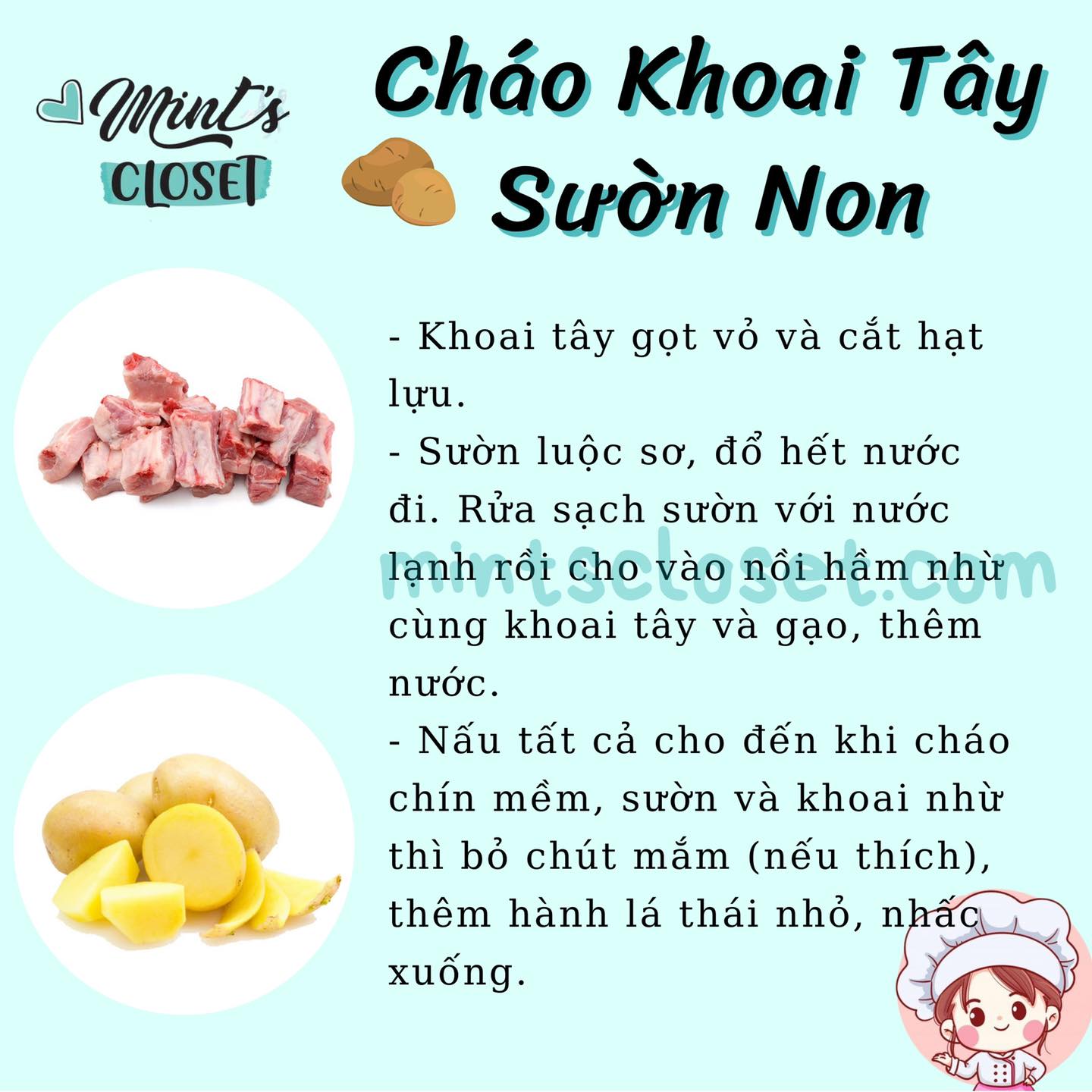 + Bước 1: Sườn heo rửa sạch, chặt khúc. Khoai tây gọt vỏ, luộc chín, nghiền nhuyễn.
