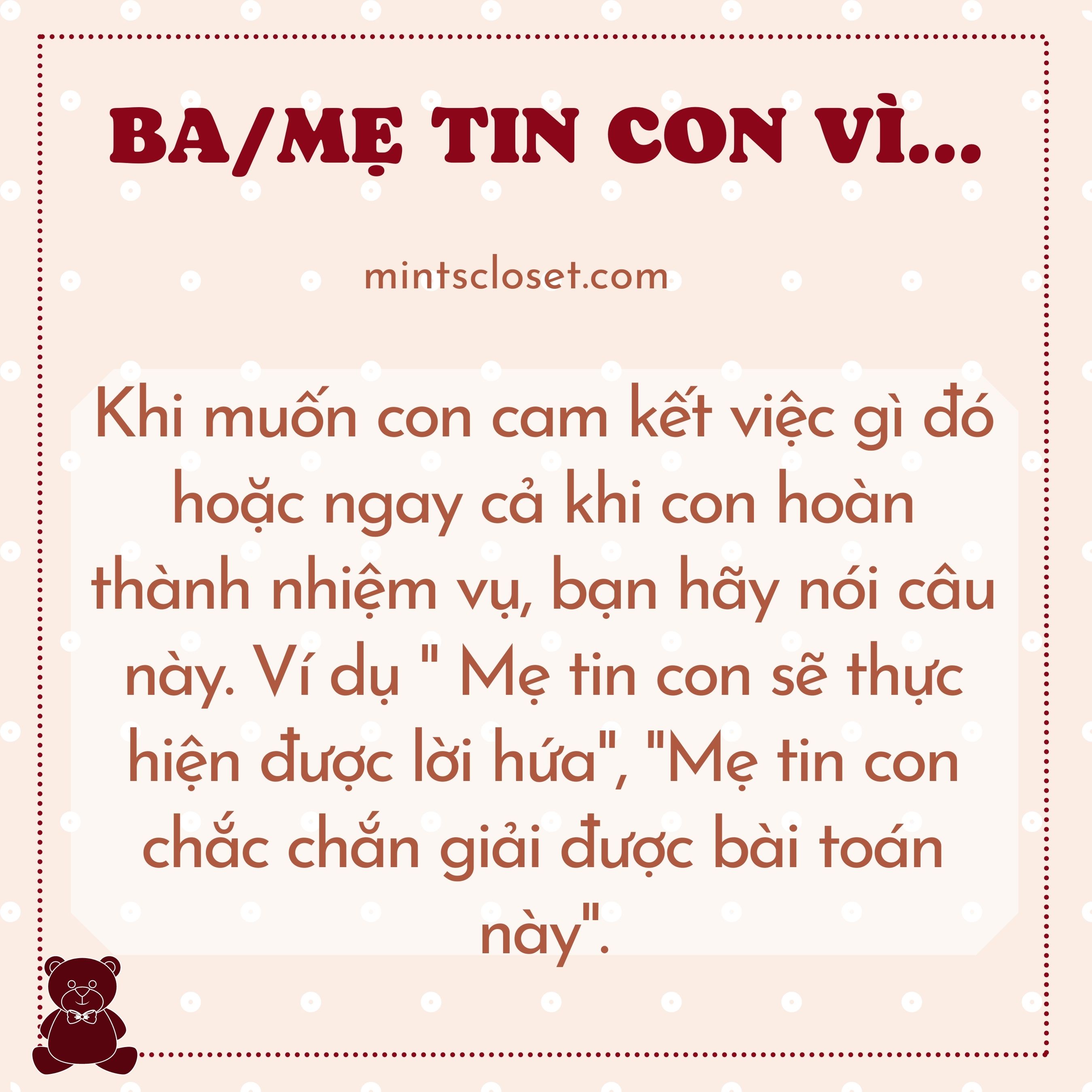 07.10.2021Đồng hành cùng con trên bước đường trưởng thành là điều hết sức tuyệt vời và thiêng liêng của các bậc phụ huynh. Hãy tạo cho con niềm tin, động lực bằng những câu nói hay nuôi dưỡng tư duy trẻ sau đây.