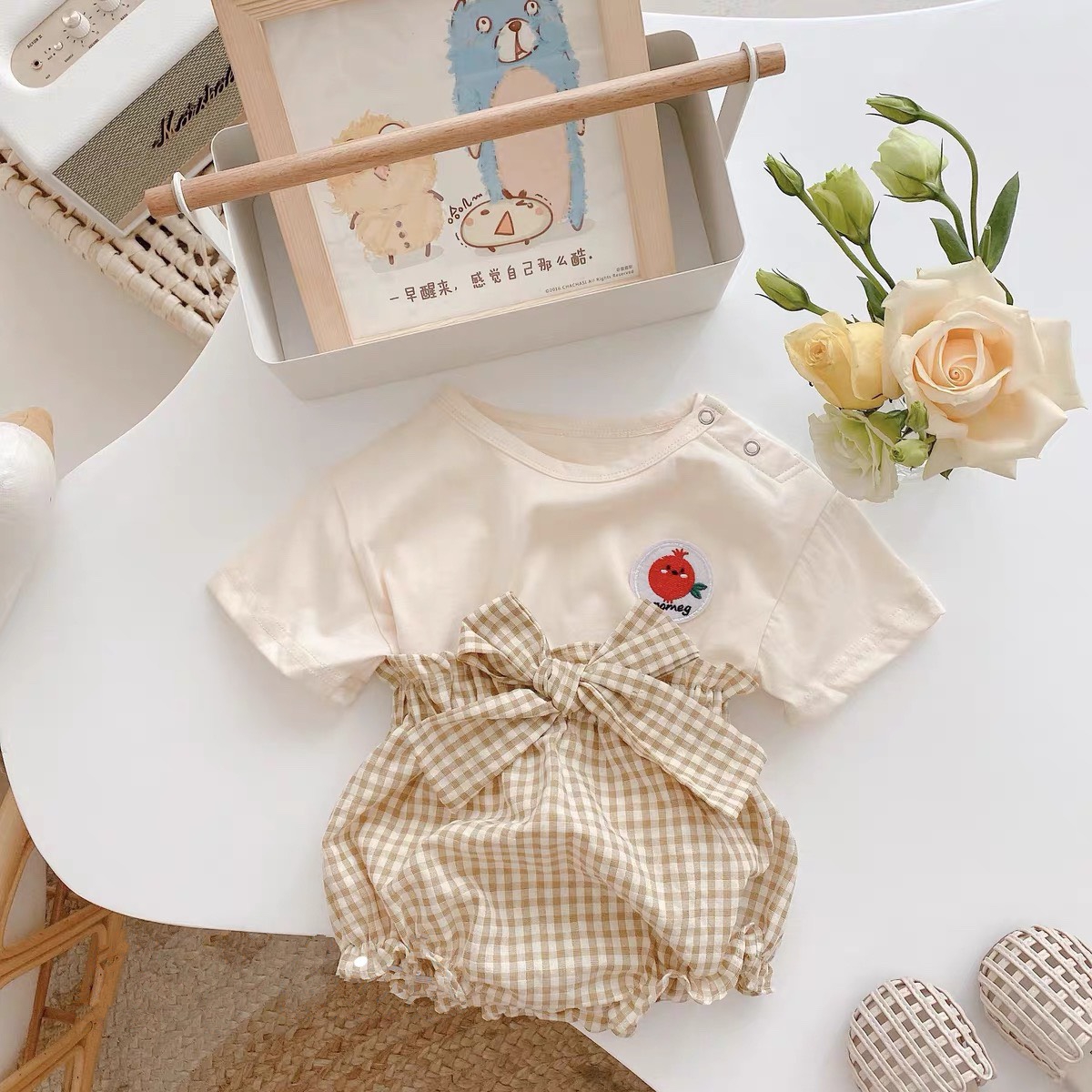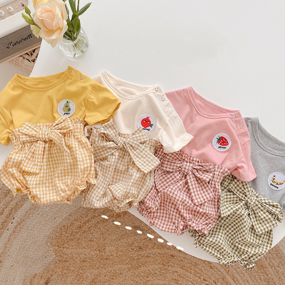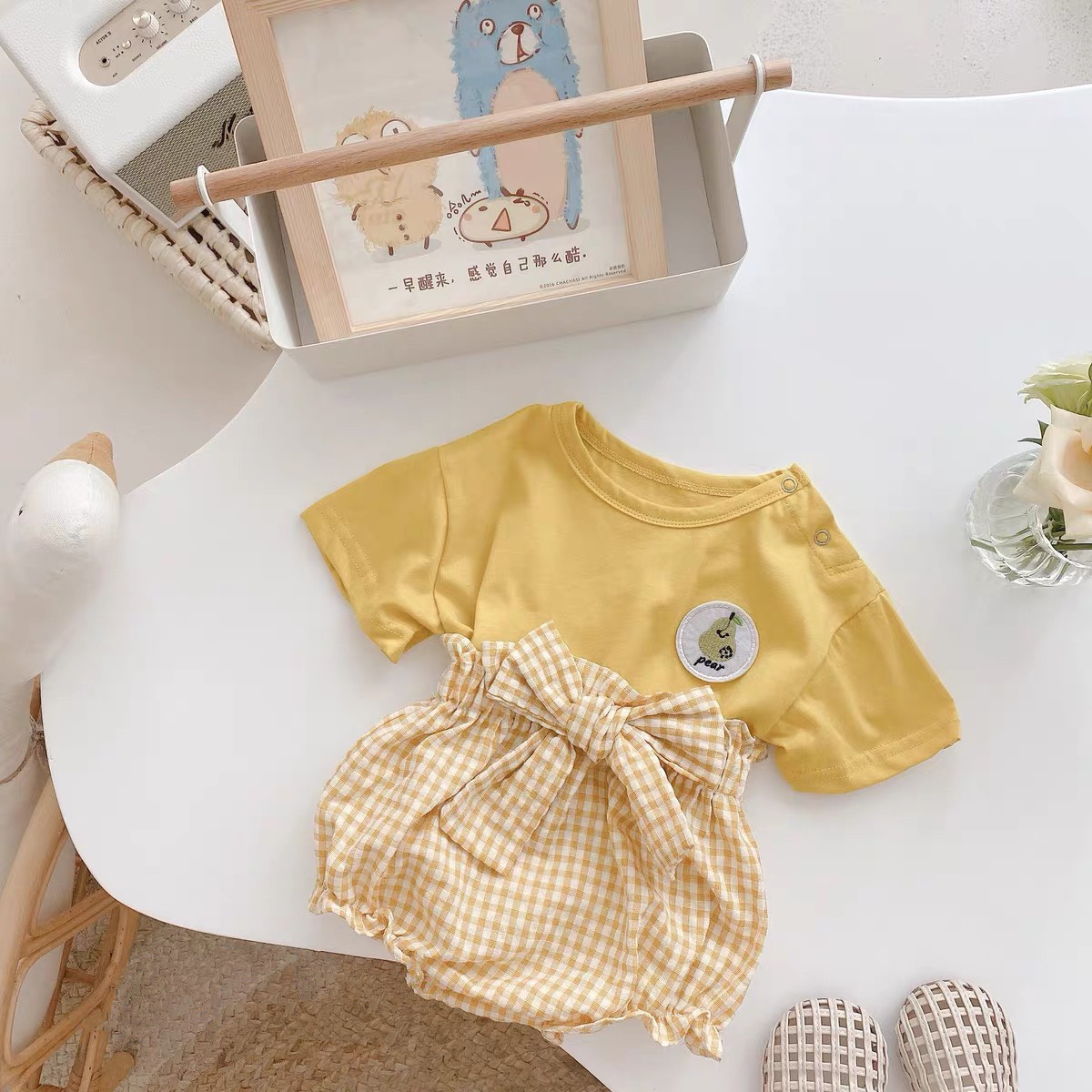 Set Áo Cổ Tàu Thắt Nơ Kèm Chip