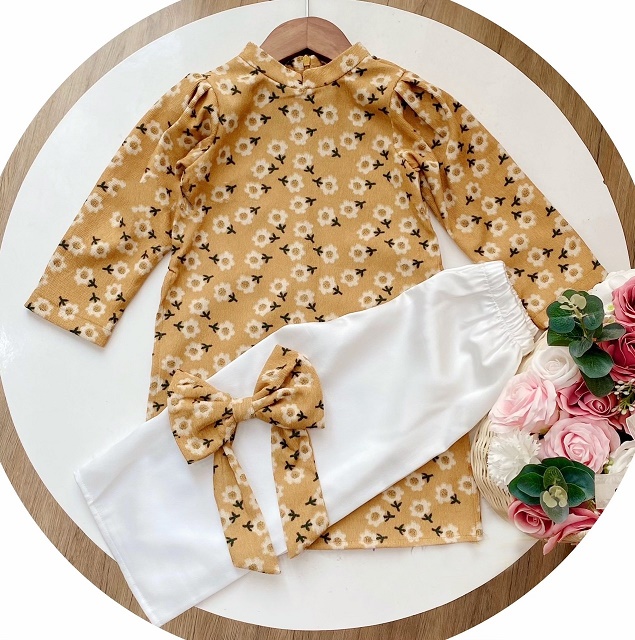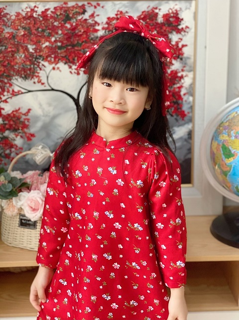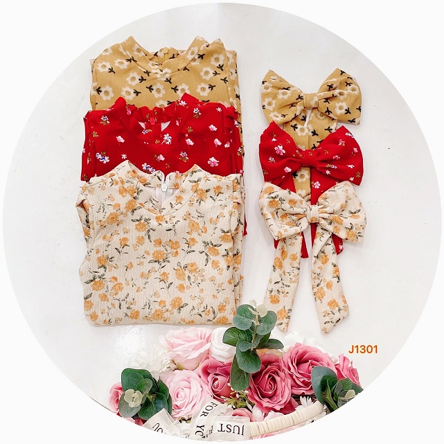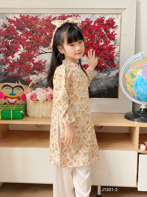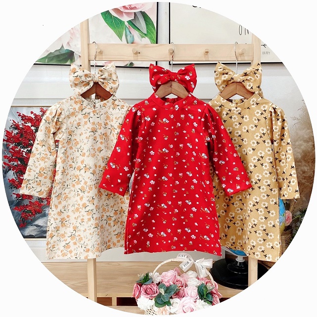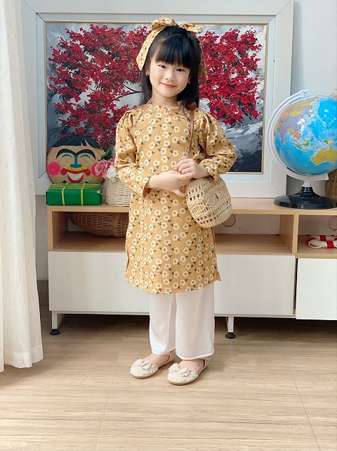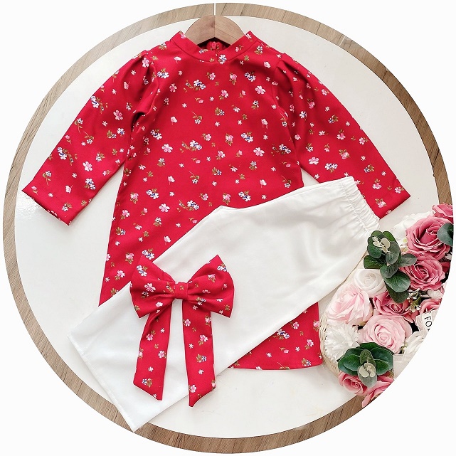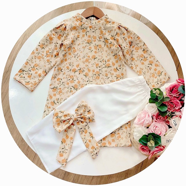 Set Áo Dài Hoa Kèm Nơ