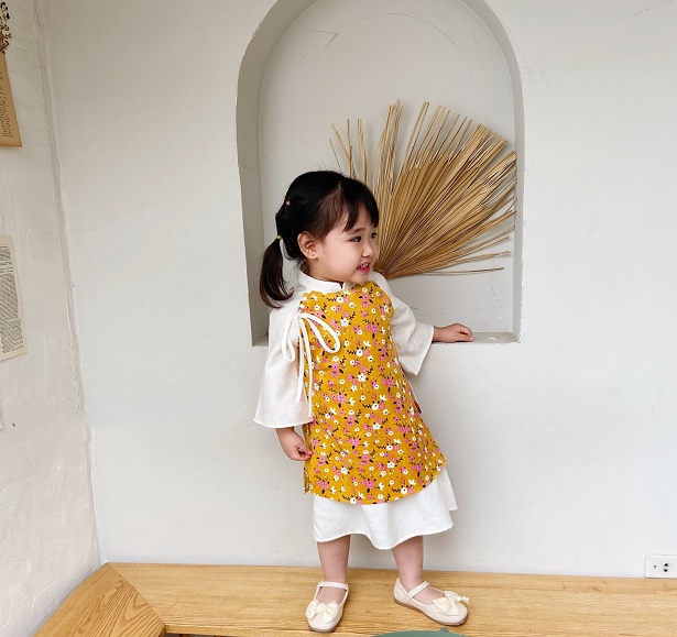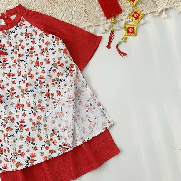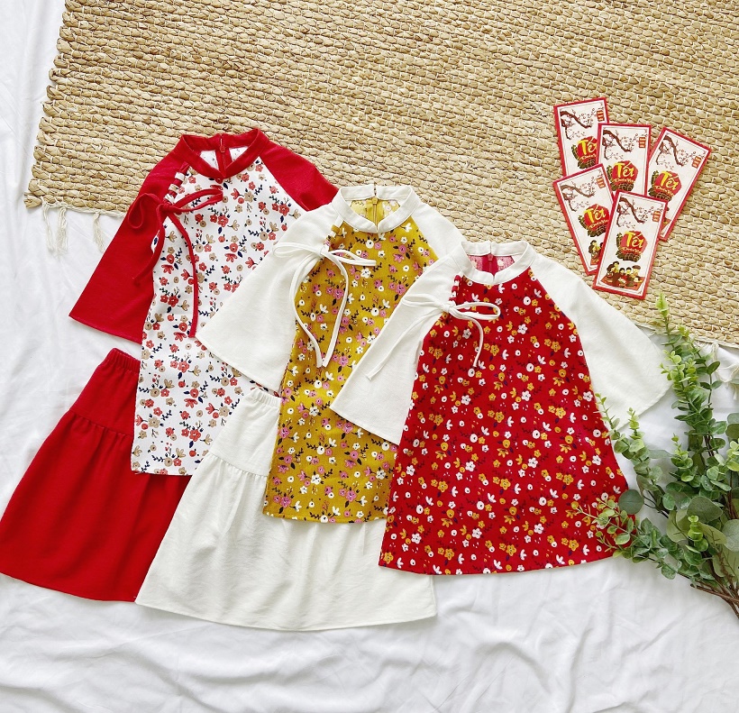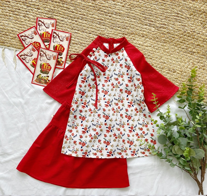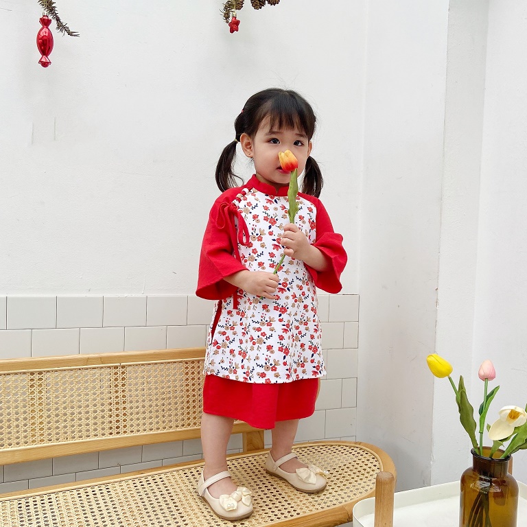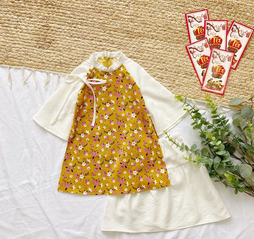Set Áo Dài Hoa Nhí Thắt Nơ