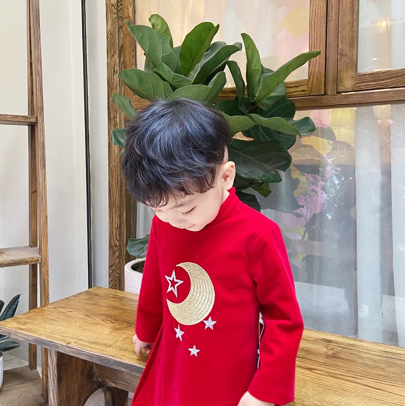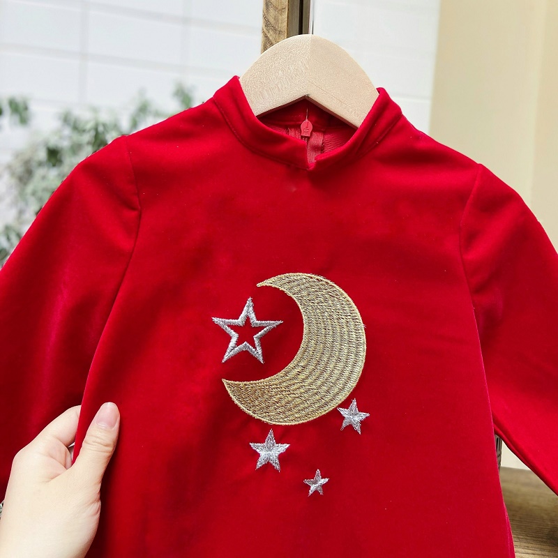 Set Áo Dài Nhung Thêu Trăng Sao Kèm Quần